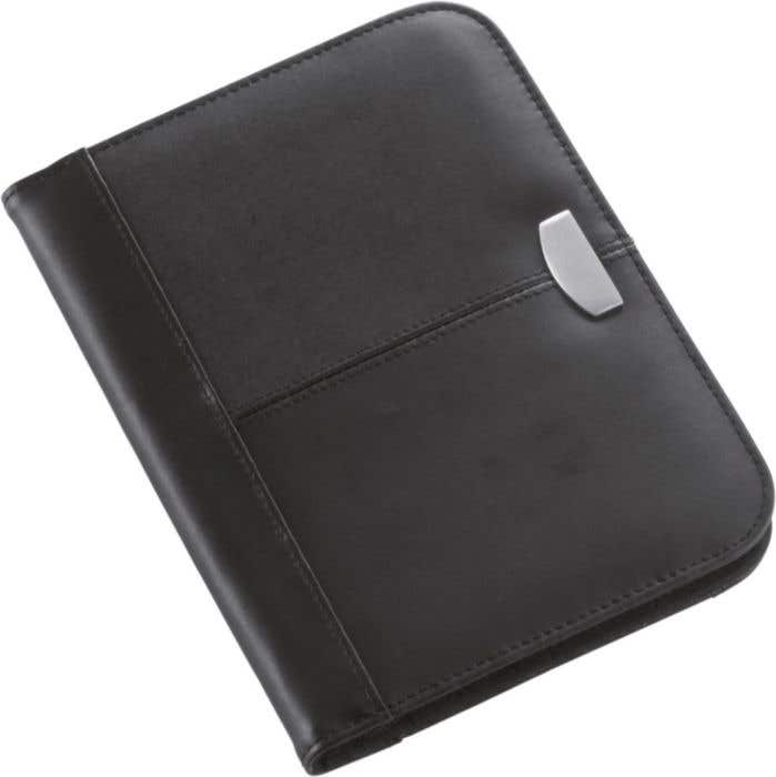 De Documentenmap Paris A5 is niet zomaar een map - het is een stijlvolle organisator die je laat bedrukken met jouw bedrijfslogo voor een professionele uitstraling. Deze luxe map van bonded leather is voorzien van een metalen plaat, ideaal voor een elegante lasergravering. Met het bijgeleverde gelinieerde schrijfblok van 25 pagina's heb je altijd papier bij de hand voor notities tijdens belangrijke vergaderingen.